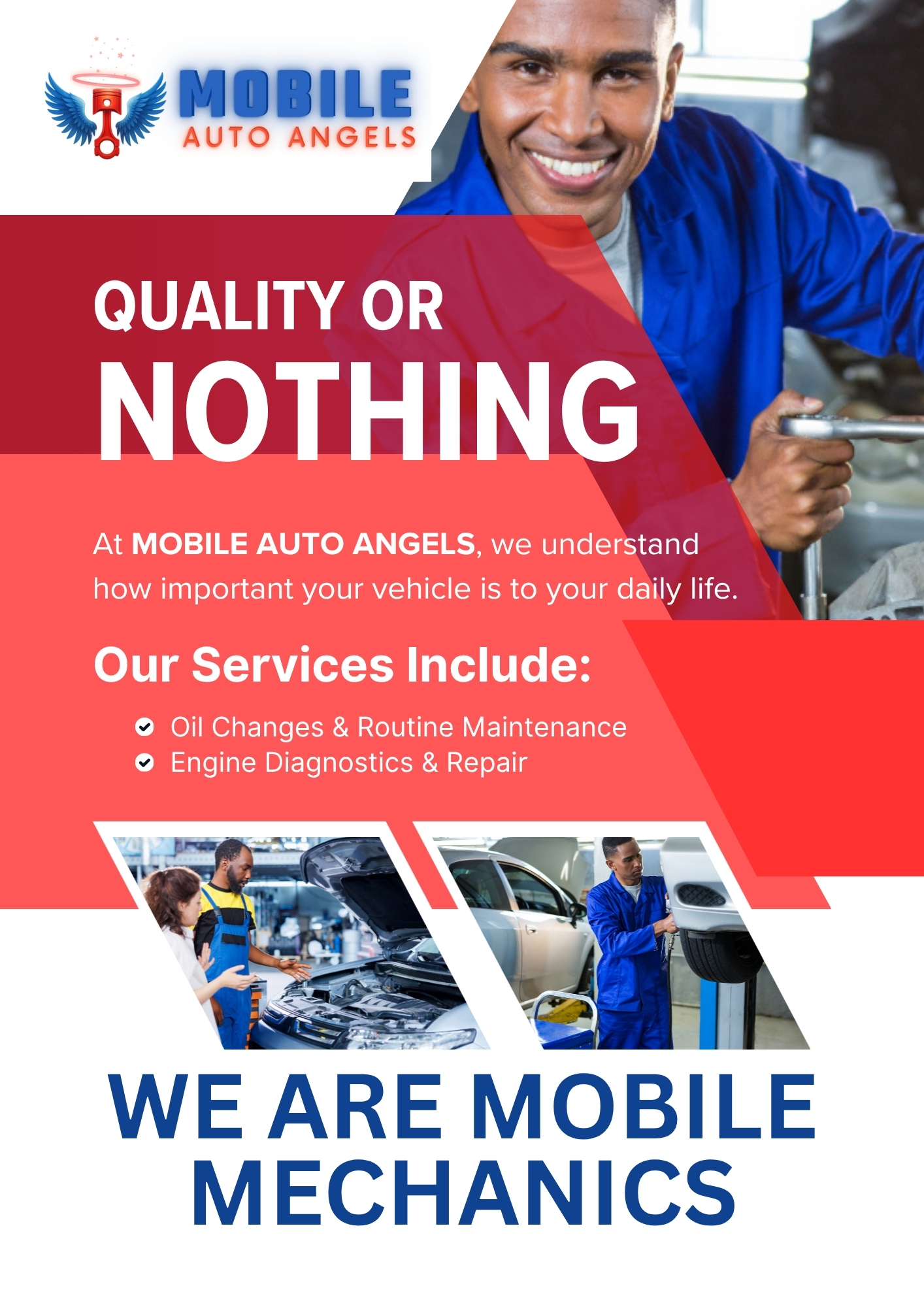 🚗 Drive with Confidence, Trust Mobile Auto Angels! 🔧 From routine maintenance to major repairs, our skilled mechanics ensure your car runs like new. At Mobile Auto Angels, we pride ourselves on quality service, quick turnarounds, and honest pricing. Your car deserves the best—trust the experts at Mobile Auto Angels to keep you on the road. 📞 Book your service today!